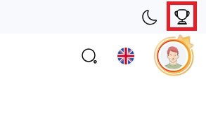 On the Profile page, look at the top area of the screen, near the language selection button.