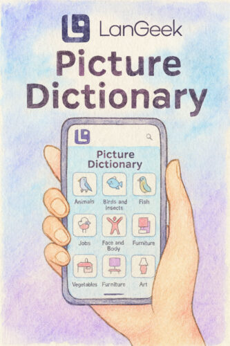 One of the core strengths of the LanGeek Picture Dictionary is its collection of over 16,000 purpose-built learning images. Unlike stock images found in many online dictionaries, these visuals are custom-created by LanGeek’s team specifically for language learning.